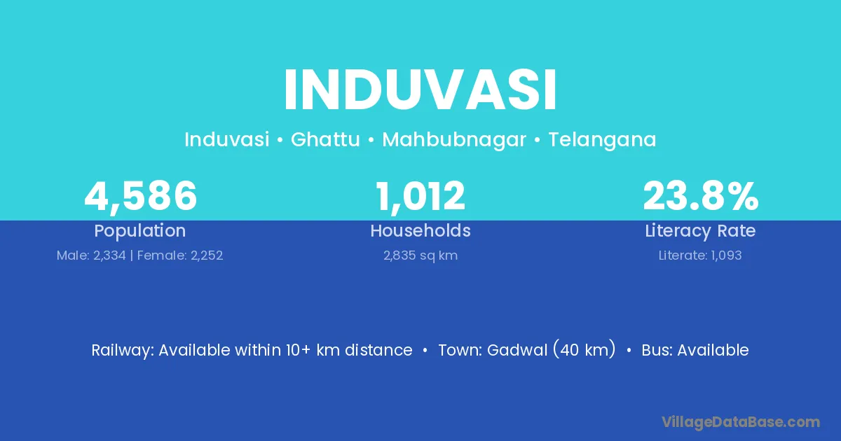 Gadwal (40 km) is the nearest town to Induvasi village for major economic activities and is located approximately 40 km away.