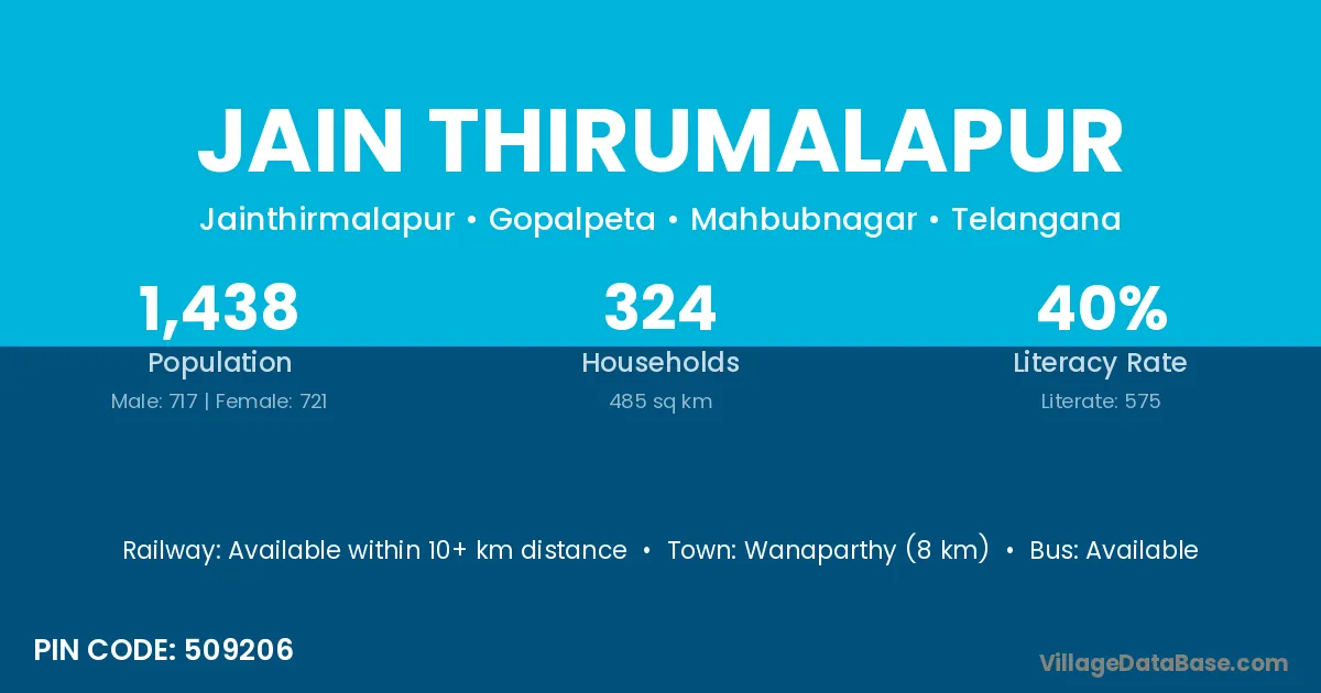 Wanaparthy (8 km) is the nearest town to Jain Thirumalapur village for major economic activities and is located approximately 8 km away.