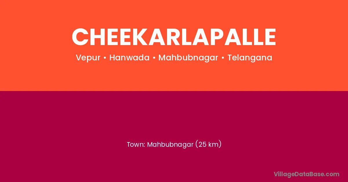 Mahbubnagar (25 km) is the nearest town to Cheekarlapalle village for major economic activities and is located approximately 25 km away.