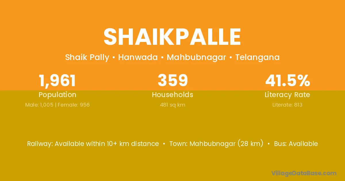 Mahbubnagar (28 km) is the nearest town to Shaikpalle village for major economic activities and is located approximately 28 km away.