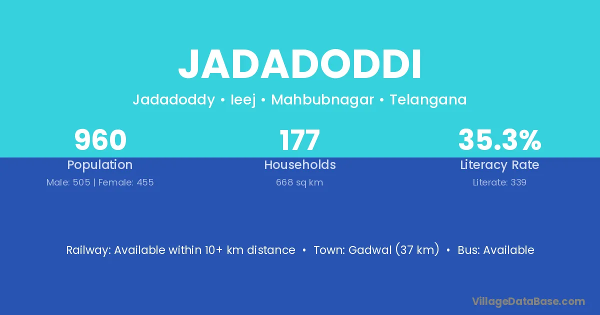 Jadadoddi village is located in the Ieej Mandal of the Mahbubnagar district in Telangana .