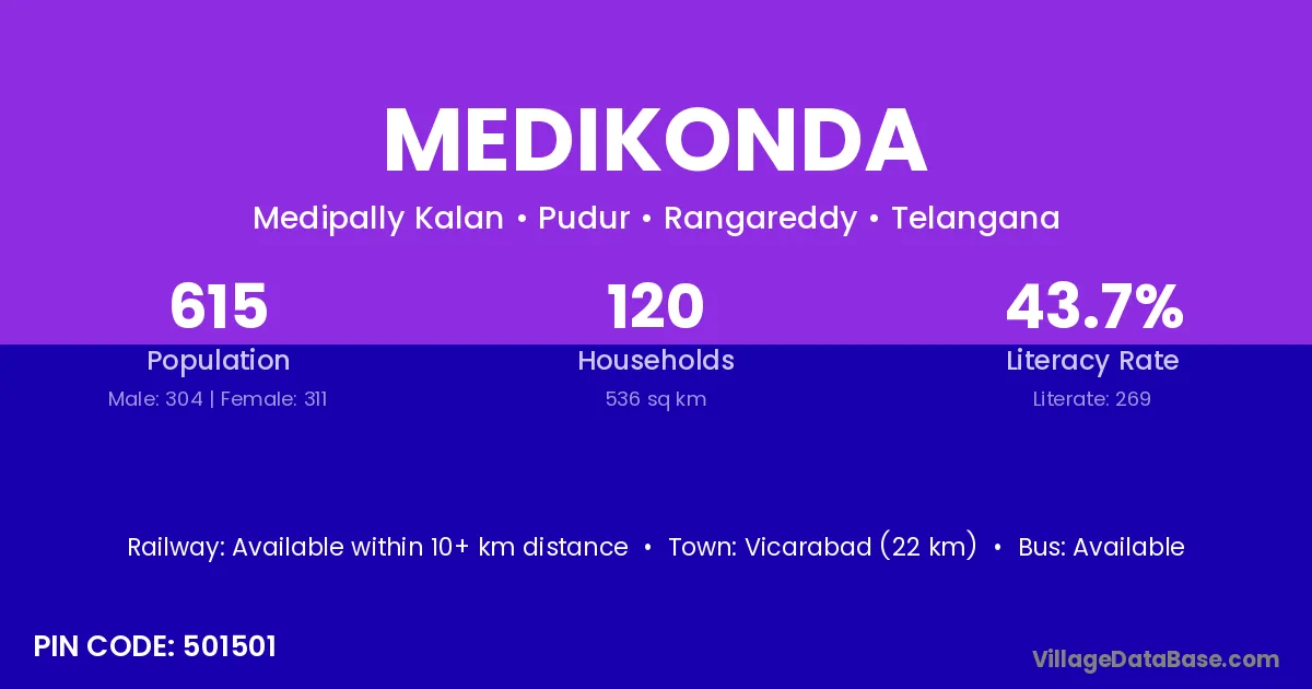Gadwal (40 km) is the nearest town to Medikonda village for major economic activities and is located approximately 40 km away.