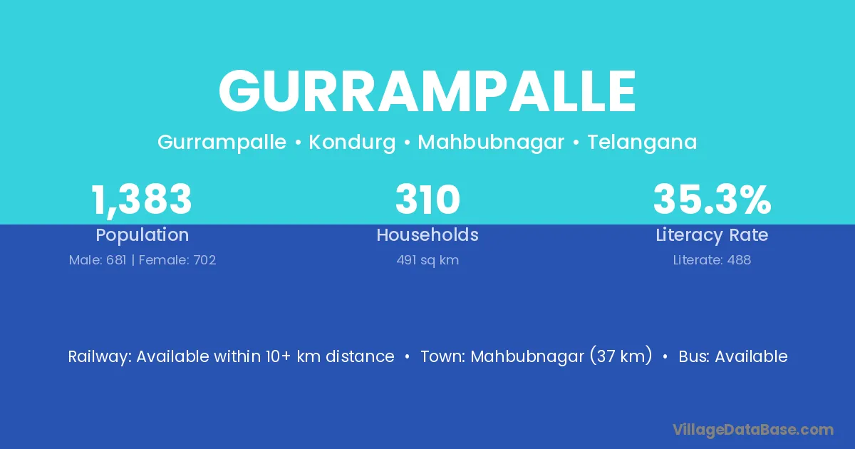 Mahbubnagar (37 km) is the nearest town to Gurrampalle village for major economic activities and is located approximately 37 km away.