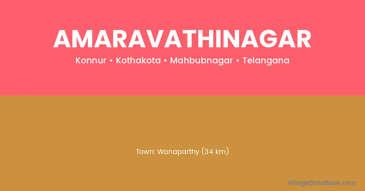 Wanaparthy (34 km) is the nearest town to Amaravathinagar village for major economic activities and is located approximately 34 km away.