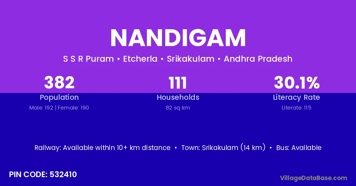 There are approximately 3,474 households in Nandigam village.
