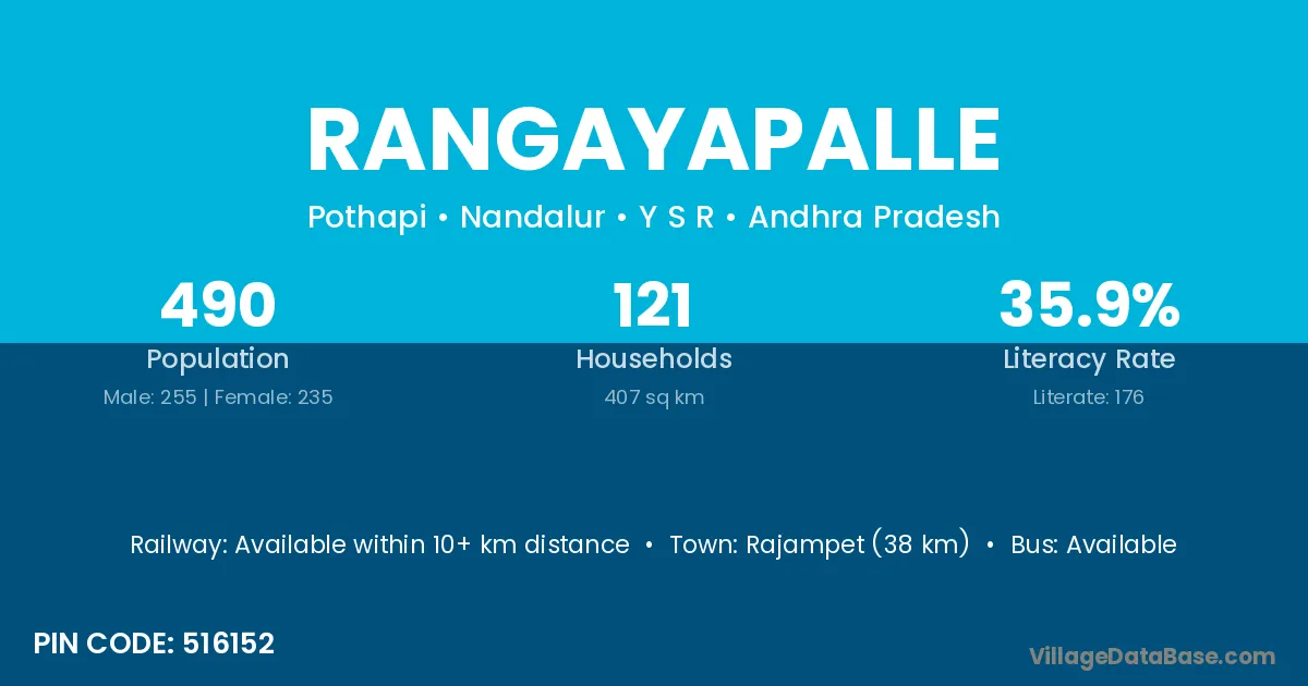 Wanaparthy (50 km) is the nearest town to Rangayapalle village for major economic activities and is located approximately 50 km away.