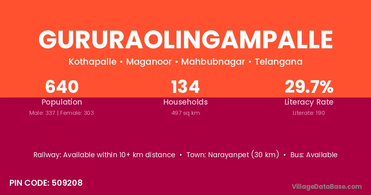 Narayanpet (30 km) is the nearest town to Gururaolingampalle village for major economic activities and is located approximately 30 km away.