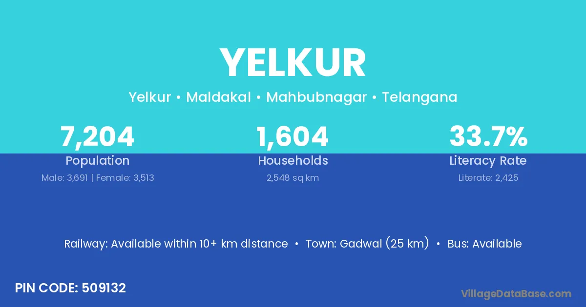 Gadwal (25 km) is the nearest town to Yelkur village for major economic activities and is located approximately 25 km away.