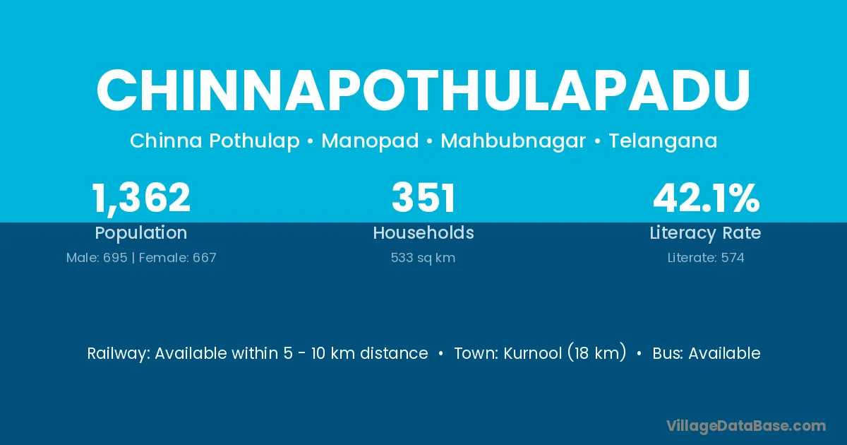 Chinnapothulapadu village has a total population of 1,362 people, of which 695 are males and 667 are females.