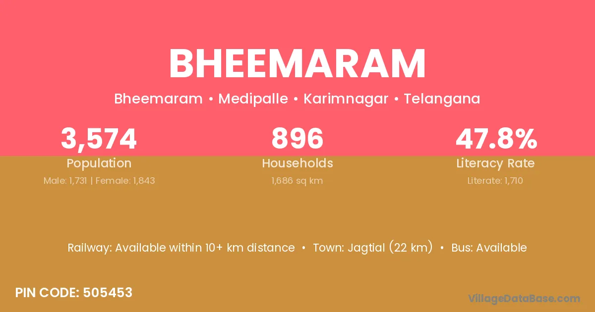 Mahbubnagar (47 km) is the nearest town to Bheemaram village for major economic activities and is located approximately 47 km away.