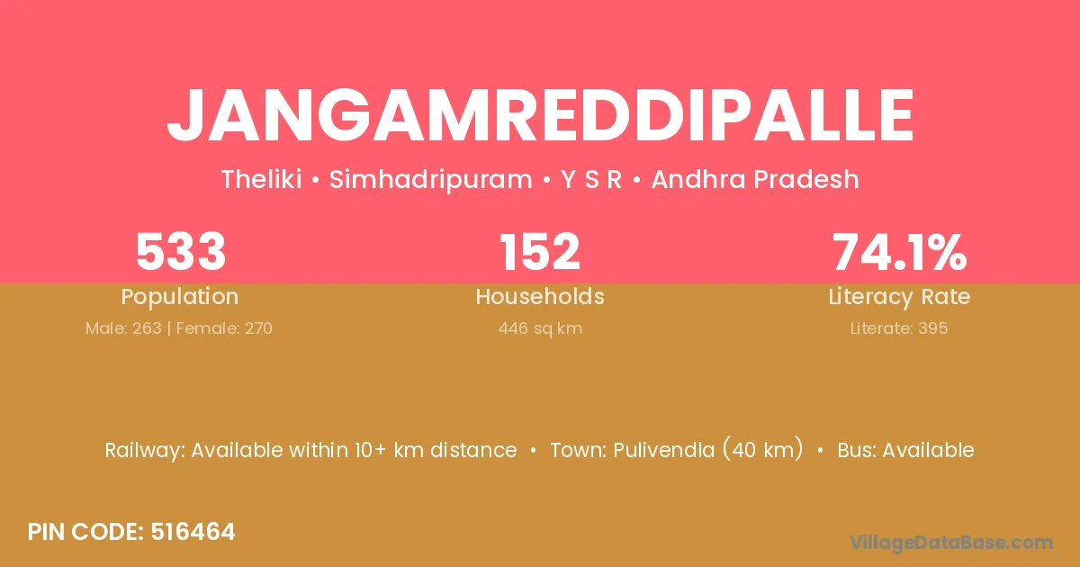 There are approximately 223 households in Jangamreddipalle village.