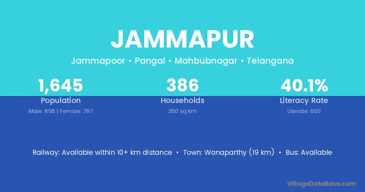 Wanaparthy (19 km) is the nearest town to Jammapur village for major economic activities and is located approximately 19 km away.