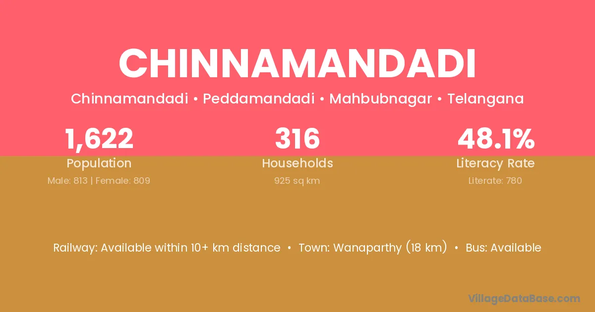 Wanaparthy (18 km) is the nearest town to Chinnamandadi village for major economic activities and is located approximately 18 km away.