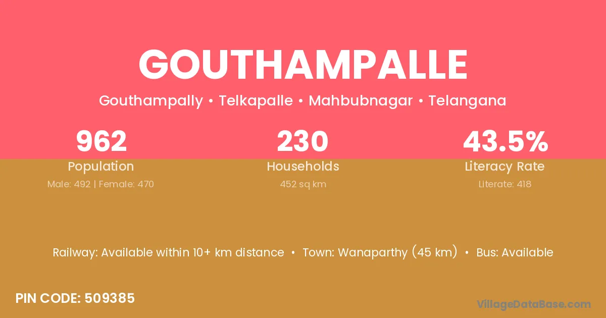 Gouthampalle village has a total population of 962 people, of which 492 are males and 470 are females.
