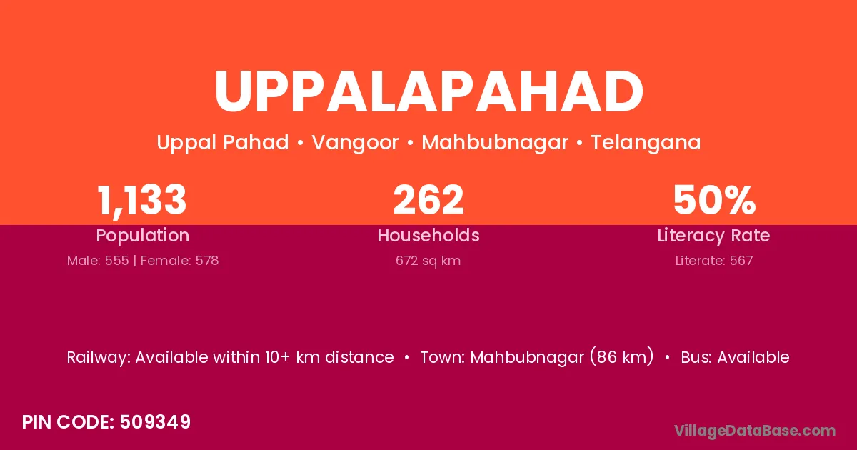 Uppalapahad village has a total population of 1,133 people, of which 555 are males and 578 are females.