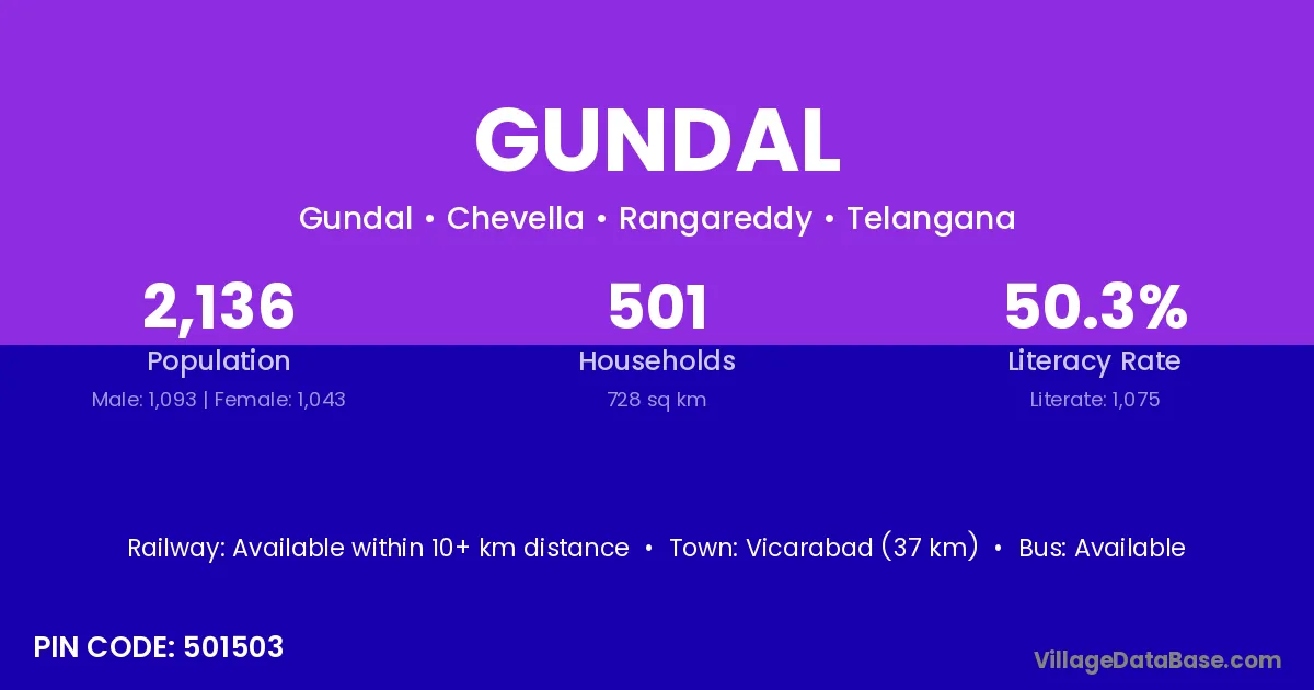 Mahbubnagar (73 km) is the nearest town to Gundal village for major economic activities and is located approximately 73 km away.