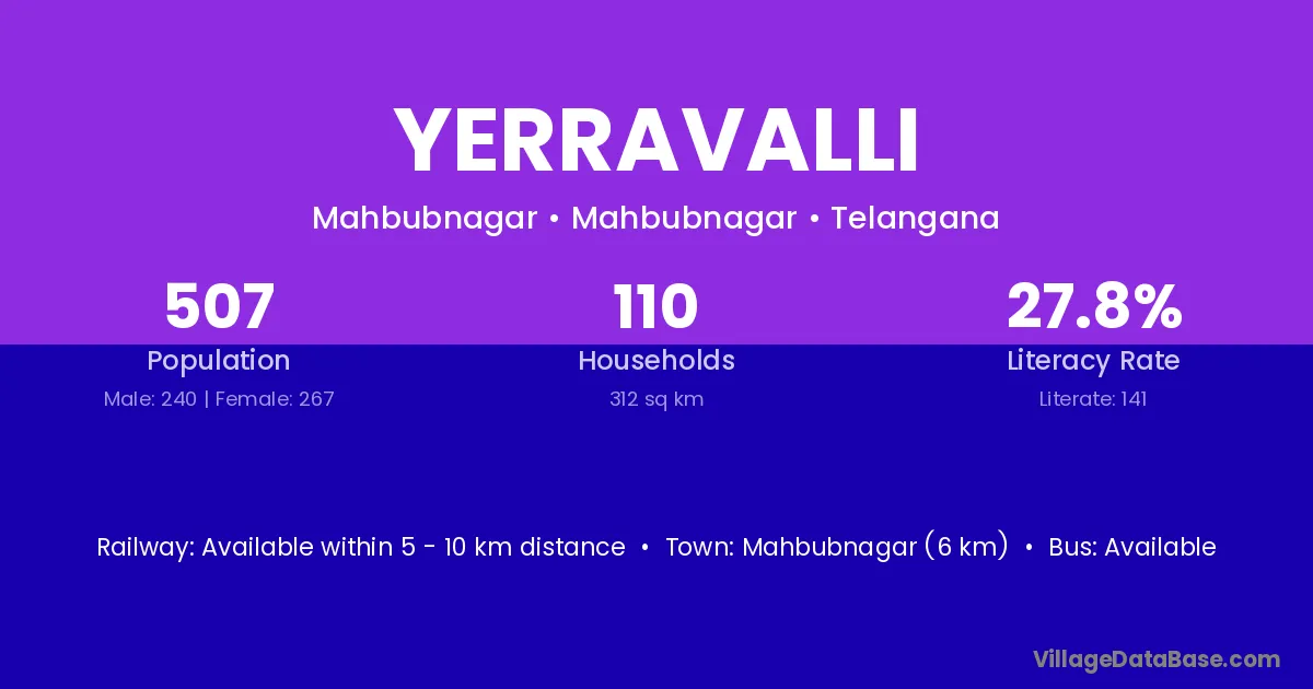 Mahbubnagar (78 km) is the nearest town to Yerravalli village for major economic activities and is located approximately 78 km away.