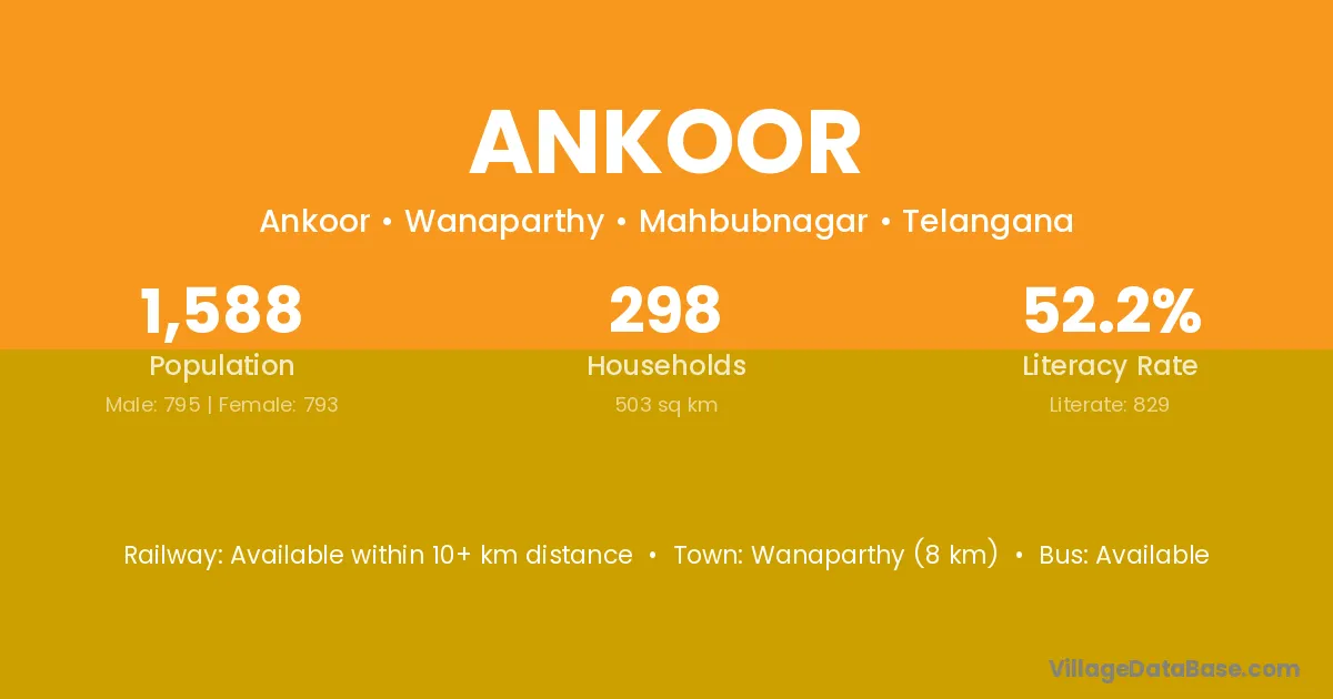 Wanaparthy (8 km) is the nearest town to Ankoor village for major economic activities and is located approximately 8 km away.