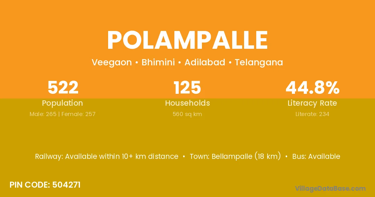 Polampalle village has a total population of 947 people, of which 462 are males and 485 are females.