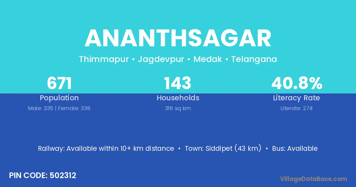 According to Census 2011 information, the village code of Ananthsagar village is 502312.