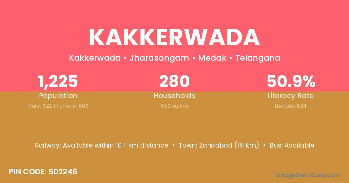 Zahirabad (19 km) is the nearest town to Kakkerwada village for major economic activities and is located approximately 19 km away.