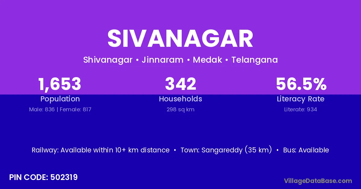 Sangareddy (35 km) is the nearest town to Sivanagar village for major economic activities and is located approximately 35 km away.