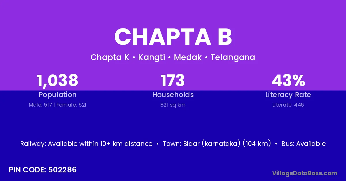Chapta B village is located in the Kangti Mandal of the Medak district in Telangana .