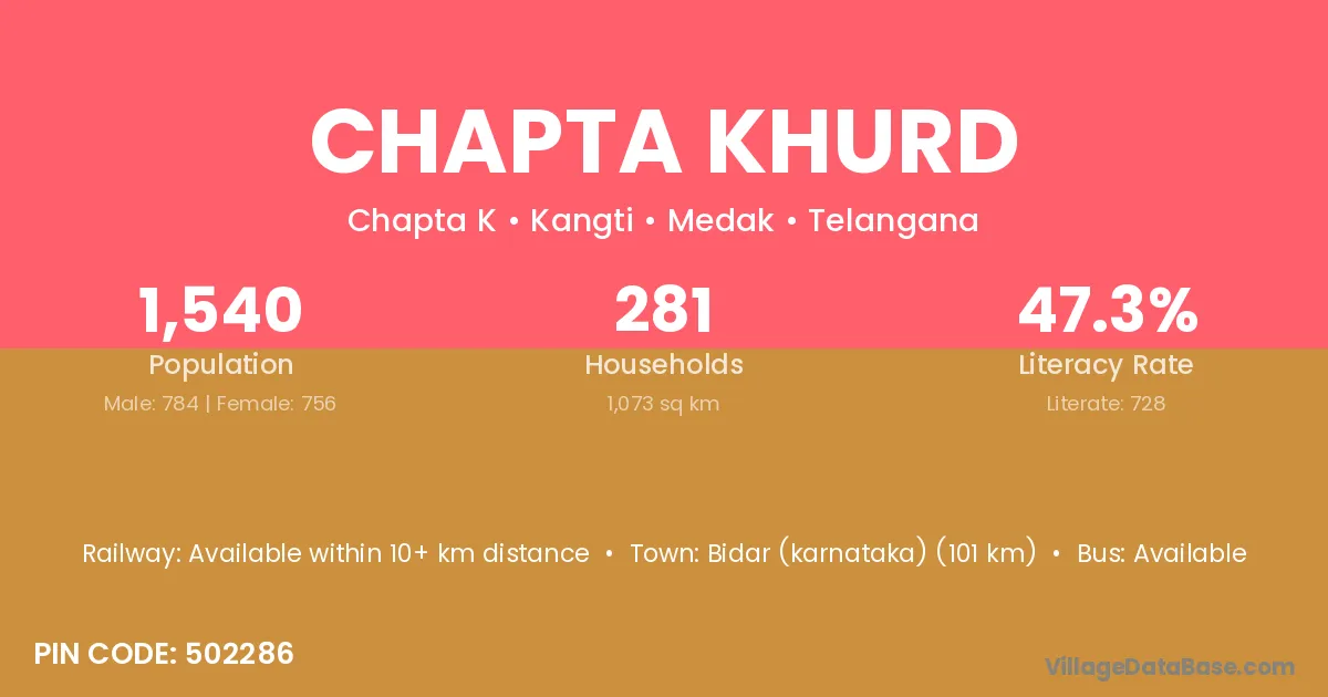 Chapta Khurd village is located in the Kangti Mandal of the Medak district in Telangana .