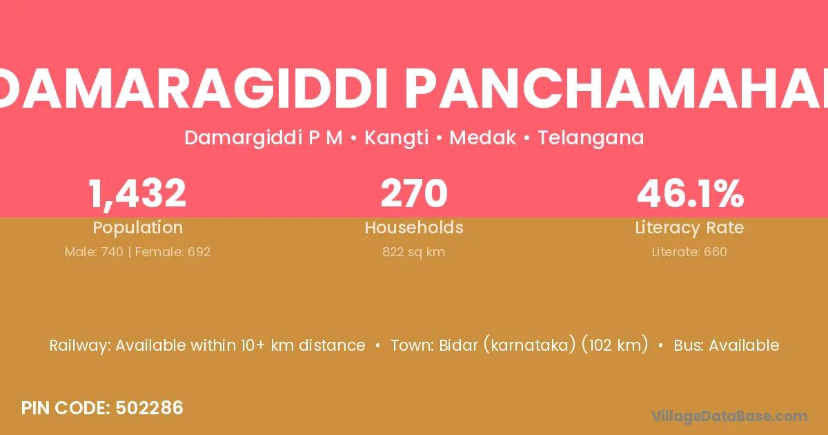 According to Census 2011 information, the village code of Damaragiddi Panchamahal village is 502286.