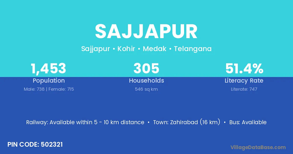 Sajjapur village has a total population of 1,453 people, of which 738 are males and 715 are females.