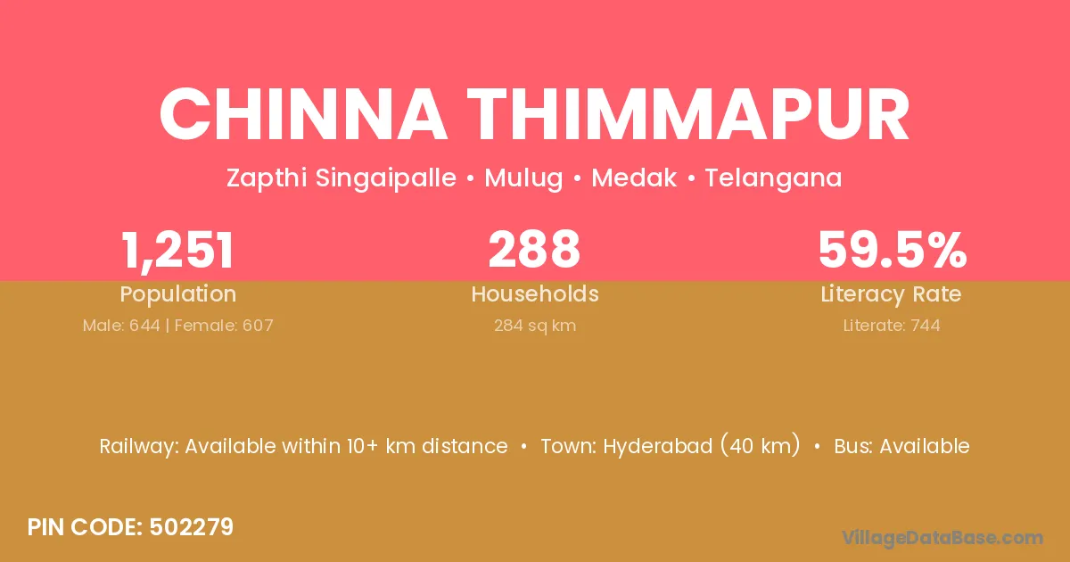 Hyderabad (40 km) is the nearest town to Chinna Thimmapur village for major economic activities and is located approximately 40 km away.
