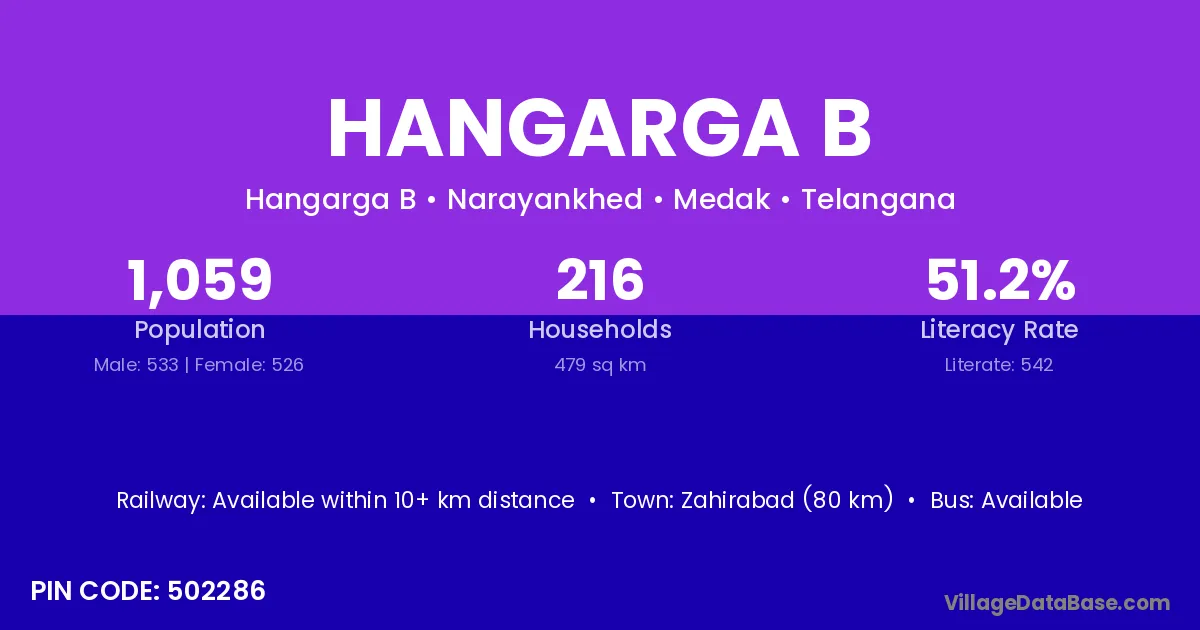 Hangarga B village has a total population of 1,059 people, of which 533 are males and 526 are females.