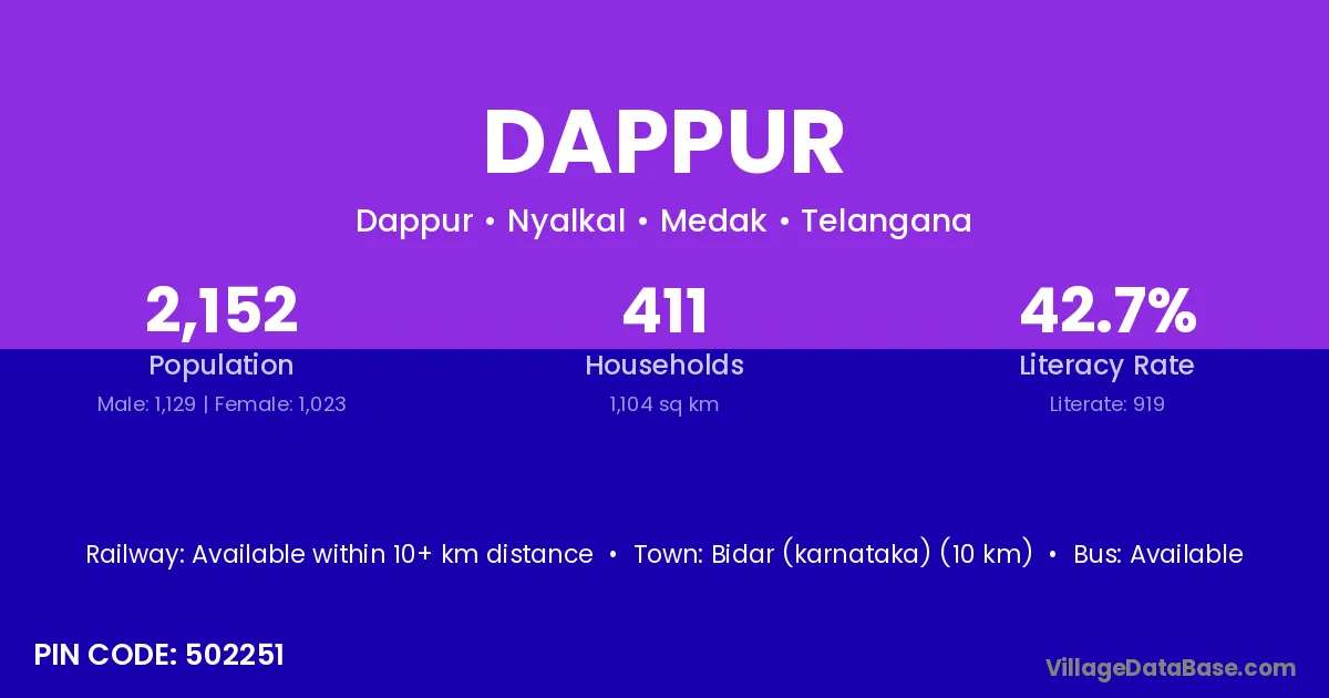 According to Census 2011 information, the village code of Dappur village is 502251.