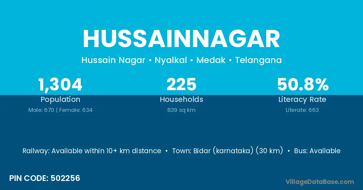 According to Census 2011 information, the village code of Hussainnagar village is 502256.
