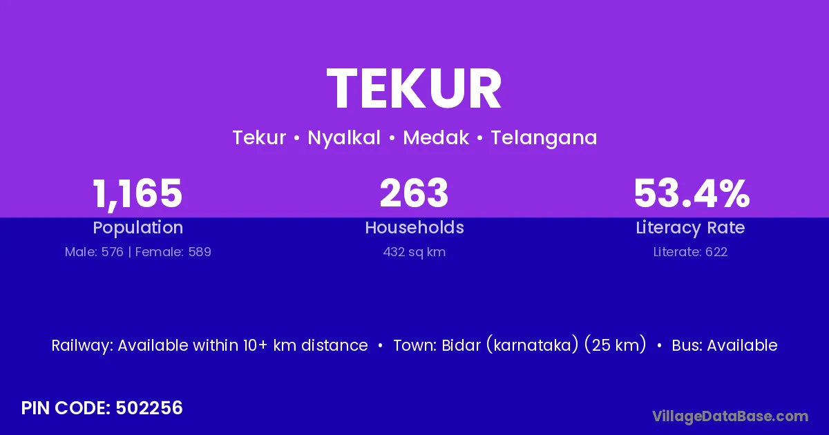 According to Census 2011 information, the village code of Tekur village is 502256.