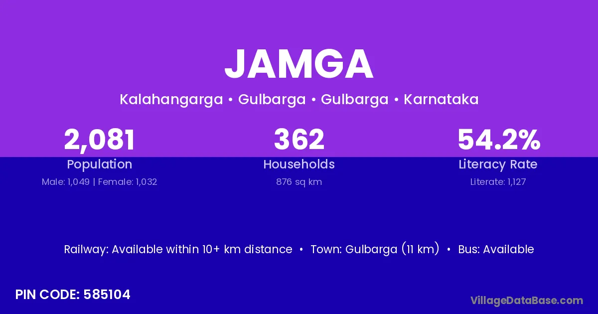 Zahirabad (30 km) is the nearest town to Jamga village for major economic activities and is located approximately 30 km away.