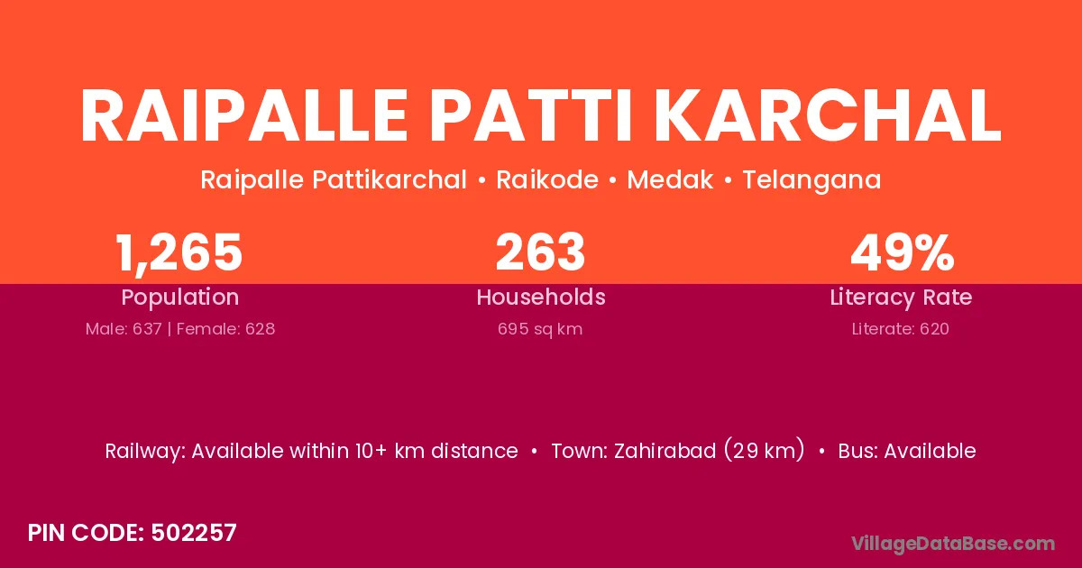 According to Census 2011 information, the village code of Raipalle Patti Karchal village is 502257.