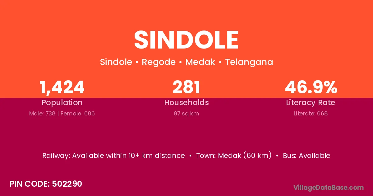 Medak (60 km) is the nearest town to Sindole village for major economic activities and is located approximately 60 km away.