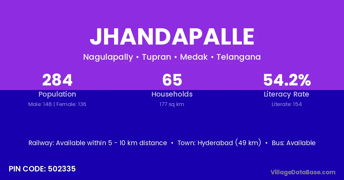 Hyderabad (49 km) is the nearest town to Jhandapalle village for major economic activities and is located approximately 49 km away.