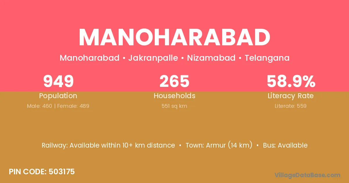 Hyderabad (47 km) is the nearest town to Manoharabad village for major economic activities and is located approximately 47 km away.