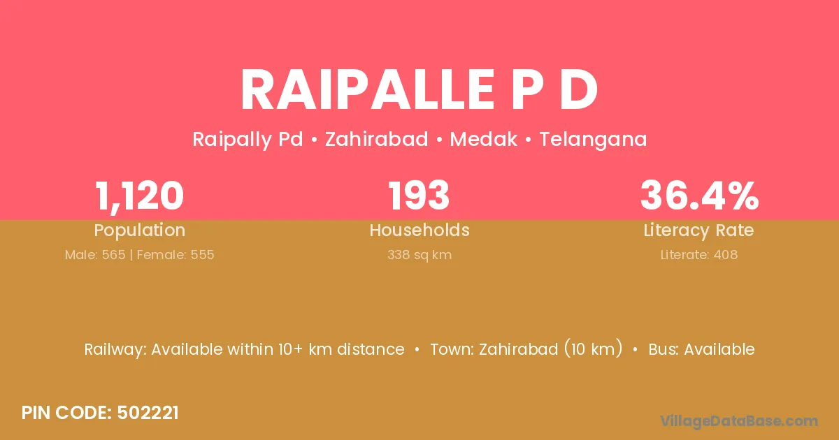 Raipalle P D village has a total population of 1,120 people, of which 565 are males and 555 are females.