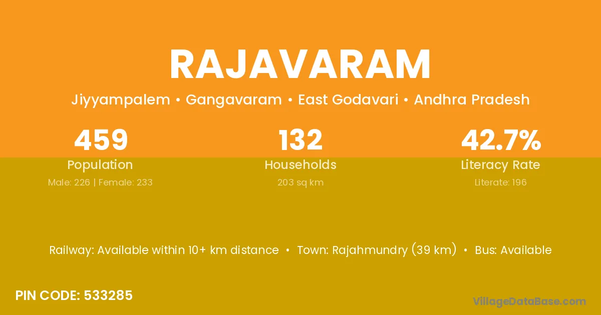 Miryalaguda (37 km) is the nearest town to Rajavaram village for major economic activities and is located approximately 37 km away.