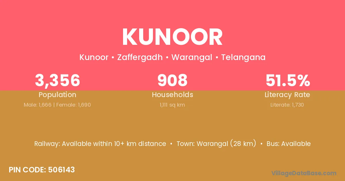 According to Census 2011 information, the village code of Kunoor village is 508285.