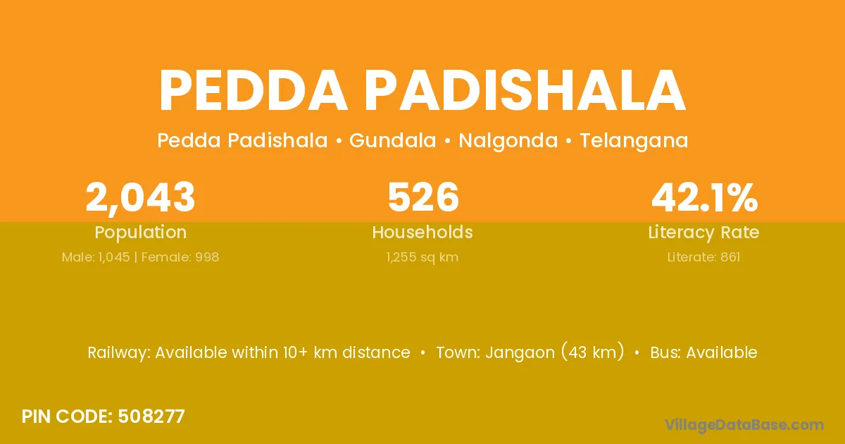 Pedda Padishala village has a total population of 2,043 people, of which 1,045 are males and 998 are females.
