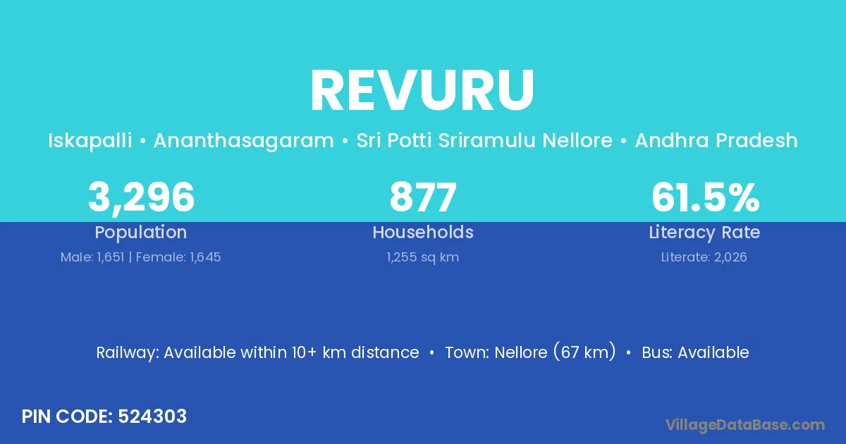 Jaggaiahpet (25 km) is the nearest town to Revuru village for major economic activities and is located approximately 25 km away.