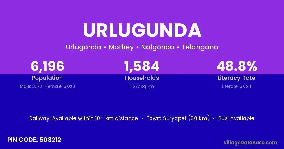 Suryapet (30 km) is the nearest town to Urlugunda village for major economic activities and is located approximately 30 km away.