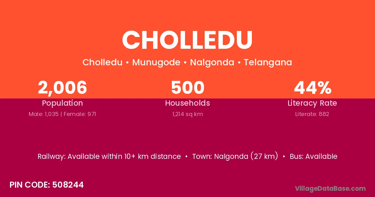 According to Census 2011 information, the village code of Cholledu village is 508244.