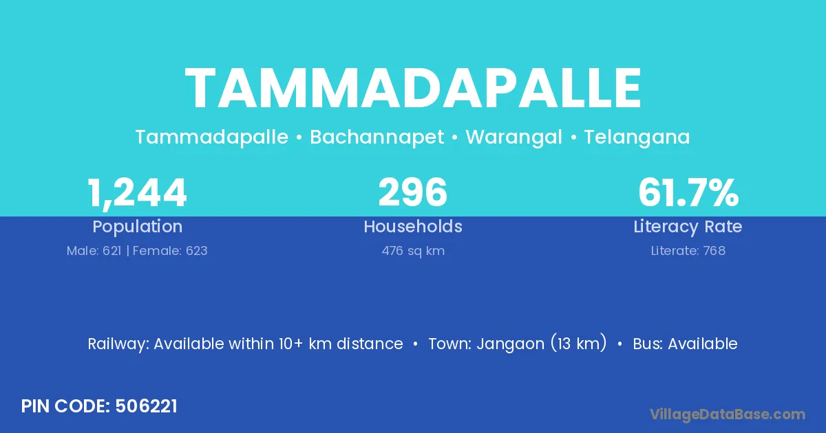 Tammadapalle village has a total population of 628 people, of which 316 are males and 312 are females.