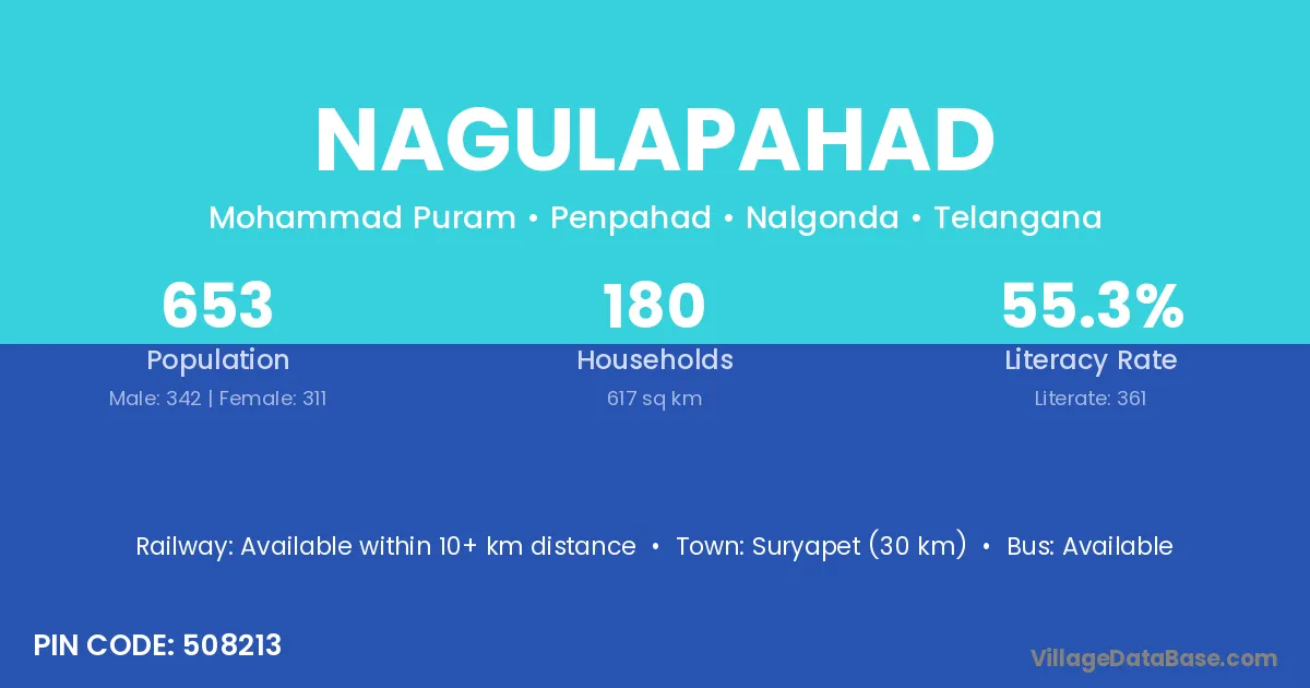 Suryapet (30 km) is the nearest town to Nagulapahad village for major economic activities and is located approximately 30 km away.