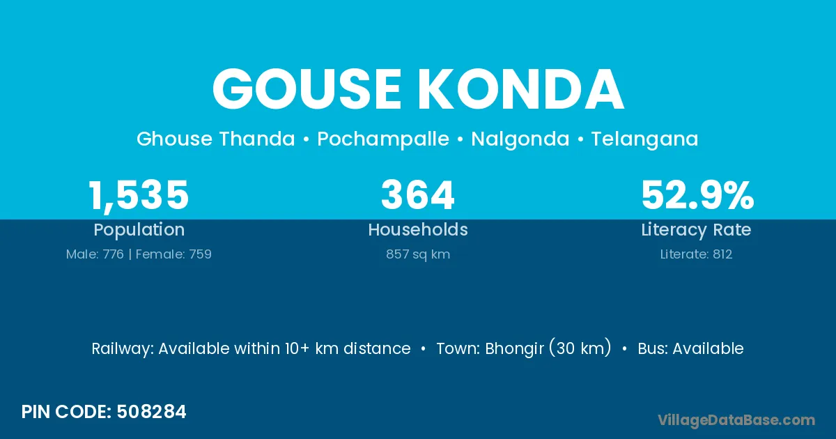 Gouse Konda village has a total population of 1,535 people, of which 776 are males and 759 are females.